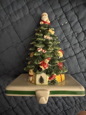Spode 5.5" Stocking Holder with Hook - Santa Mannequin, Fine Earthenware, Collectible Home Décor - Weighted Hangers for Xmas