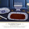 Spode Judaica Collection Challah Tray with Wood Insert - 17.5 Inch Blue & White Porcelain Shabbat Serving Piece, Removable Cutting Board Frame