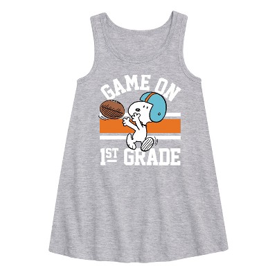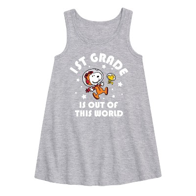 SpongeBob SquarePants - 1st Grade Squad - Toddler & Youth Girls A-line Dress - Dive into the fun of Bikini Bottom with SpongeBob SquarePants graphic apparel! Featuring colorful designs of SpongeBob, Patrick, Squidward, Sandy, and more, this collection brings the show's quirky humor and unforgettable moments to life. Perfect for fans of all ages, these pieces add a splash of personality to any wardrobe.
