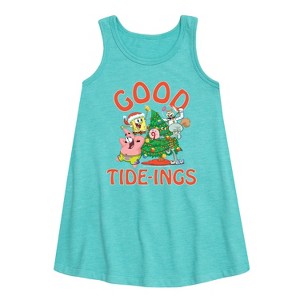 Girls' SpongeBob SquarePants Good Tide Graphic Sleeveless Aline Dress - Turquoise - 2T