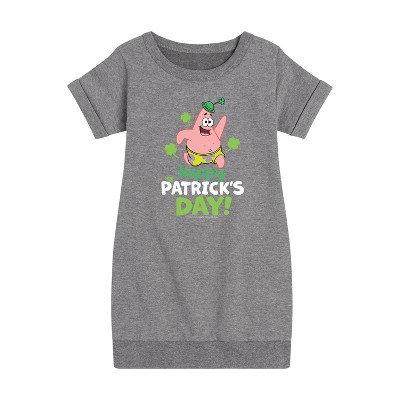 SpongeBob SquarePants - Happy St. Patricks Day - Girls Ss Fleece Dress - Dive into the fun of Bikini Bottom with SpongeBob SquarePants graphic apparel! Featuring colorful designs of SpongeBob, Patrick, Squidward, Sandy, and more, this collection brings the show's quirky humor and unforgettable moments to life. Perfect for fans of all ages, these pieces add a splash of personality to any wardrobe.
