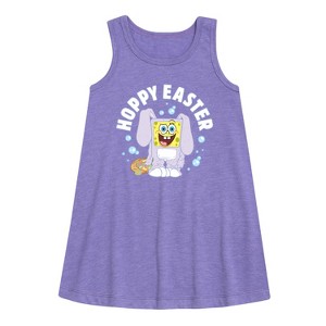 Girls' - SpongeBob Squarepants - Hoppy Easter Graphic Sleeveless Aline Dress - 1 of 4