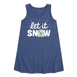 SpongeBob SquarePants - Let It Snow - Toddler and Youth Girls A-line Dress - Dive into the fun of Bikini Bottom with SpongeBob SquarePants graphic apparel! Featuring colorful designs of SpongeBob, Patrick, Squidward, Sandy, and more, this collection brings the show's quirky humor and unforgettable moments to life. Perfect for fans of all ages, these pieces add a splash of personality to any wardrobe.