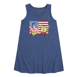 SpongeBob SquarePants - Patrick Sparkers Flag - Toddler & Youth Girls A-line Dress - Dive into the fun of Bikini Bottom with SpongeBob SquarePants graphic apparel! Featuring colorful designs of SpongeBob, Patrick, Squidward, Sandy, and more, this collection brings the show's quirky humor and unforgettable moments to life. Perfect for fans of all ages, these pieces add a splash of personality to any wardrobe.