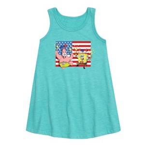 SpongeBob SquarePants - Patrick Sparkers Flag - Toddler & Youth Girls A-line Dress - Dive into the fun of Bikini Bottom with SpongeBob SquarePants graphic apparel! Featuring colorful designs of SpongeBob, Patrick, Squidward, Sandy, and more, this collection brings the show's quirky humor and unforgettable moments to life. Perfect for fans of all ages, these pieces add a splash of personality to any wardrobe.