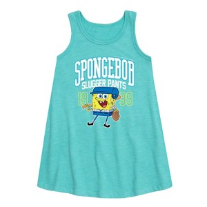Girls' - SpongeBob SquarePants - SpongeBob Slugger Pants Graphic Sleeveless Aline Dress - 1 of 4