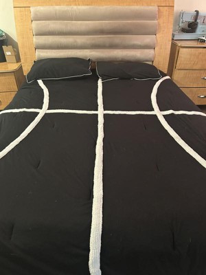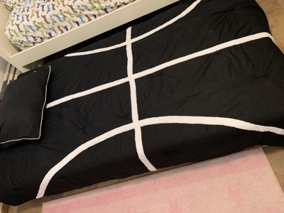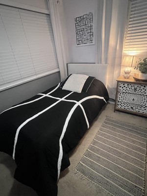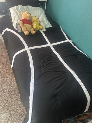 Mingled Threads Appliqued Court black comforter is the perfect size. It does look like an actual court with the white fuzzy lines of fabric running throughout it. My son says it’s warm and comfortable. Even using it on a bunk bed it still fits well. The pillowcase is easy to put on and also comfortable to sleep on. I’d say the only negative thing about this set is that it’s made of polyester. It would be even better if it was cotton. I received this product from Bullseye in exchange for my honest review.