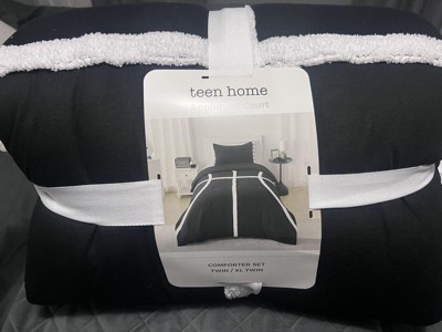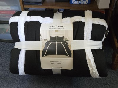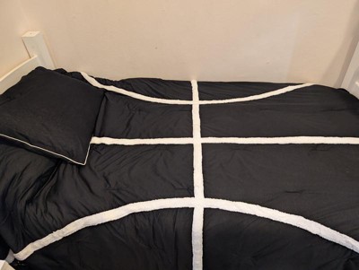 This is a great comforter for a teens room because it is a subtle nod to basketball. It's black with fuzzy white basketball lines. It is fluffy and soft. Oversized on my son's full size bed. It came with two black standard size pillowcases with white piping. The quality seems to be good. Both my son and I are happy with it and I would recommend it.