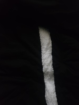 This comforter set consists of a comforter measuring 88 x 92 inches and two standard shams. All items are machine washable and can be tumble dried, and are constructed using 100% recycled polyester. The applique is quite unique and is featured on one side of the comforter, the other side being a solid black. The shams are black and open up at the back so that the pillow itself can slide in and out. These are edged with white piping. I can only imagine that most teens will love this set, especially if they are not fans of flowery designs! It is striking in its simplicity, although the white applique helps to break up the starkness. For a change of pace, it would be easy to just flip the comforter and have the solid black side showing. All pieces are very soft to the touch and should ensure a really nice sleep.