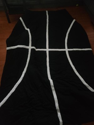 Cute. My son likes it. I felt it was a little feminine but he didnt agree. The outlines are a fluffier material than the main black. I also kind of wish I had orange with black accents but he is happy and that is what matters most. The blanket seems good material so perfect if looking for a black basketball themed blanket.