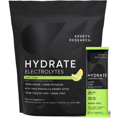 Sports Research Hydrate Electrolytes are a better way to hydrate. Our formula is sugar-free and flavorful, offering 400 mg of Sodium and 200 mg of Potassium—along with over 65 trace minerals, seven essential vitamins, and Coconut Fruit Water Powder —per serving to support daily hydration. Embrace the Sport of Life with electrolytes that you can take with you on the go and in a flavor that matches your vibe.