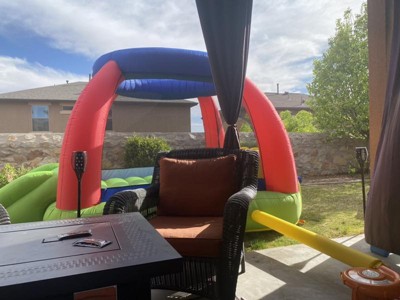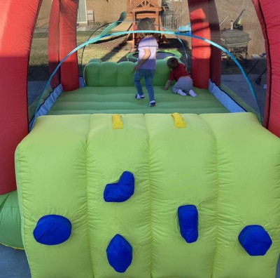 - Kids can use the safe and fun slide or the climber with inflatable rocks to enter and exit