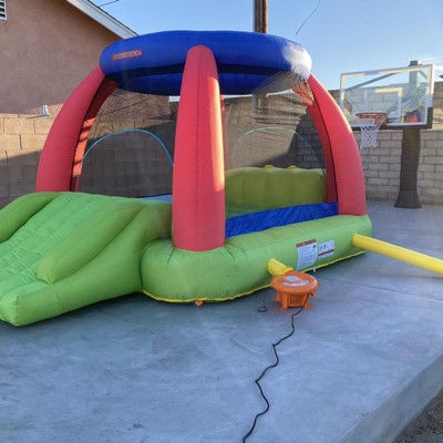 Children will spend hours bouncing, laughing and jumping in the awesome My First Climb 'N Play Bounce House! Parents will love the durable polyester fabric, double stitched seams and mesh walls, which will ensure children are safe while having a bouncing good time! The bounce house inflates in minutes with the powerful electric blower that is included. The air cushioned slide provides a safe way to enter and exit with style. The fun climbing wall with inflatable rocks provides a fun way to enter and exit the bounce house. Also included are anchors for installation, a storage bag and a repair kit. Bring home Sportspower's My First Climb 'N Play and watch your kids' eyes light up with joy and jump for excitement! The fun never ends with the My First Climb 'N Bounce House by Sportspower! All Sportspower products meet or exceed all ASTM safety standards, so kids and parents can both enjoy the My First Climb 'N Bounce House with peace of mind.