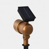 Bring light wherever you need with this Copper Spotlight from Threshold™. Designed with an integrated LED bulb, this battery-powered light enhances decks, patios and walkways. The all-weather plastic construction ensures reliable performance outdoors and with the installed lithium ion battery, this spotlight offers a simple way to elevate your lighting.