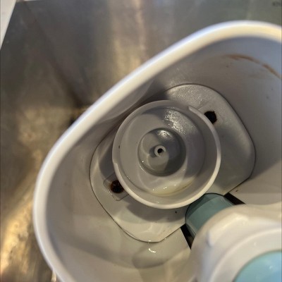 There are screws inside the compartment that holds the cleaning solution. They rusted and leaked rusty liquid