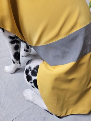 This raincoat is absolutely adorable! The bright yellow color is perfect for keeping my pup visible on rainy walks, and the lightweight material keeps them dry without overheating. I actually love the fact that it’s reversible- the stripes are even cuter on my boy!! The hoodie fits loosely but comfortably. The quality is great for the price, and my dog actually tolerates wearing it, which is a huge win! Highly recommend for keeping your furry friend stylish and dry.