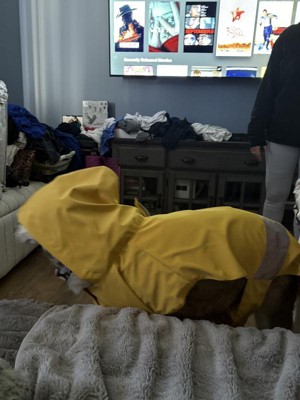 This is just the cutest raincoat ever. My fur baby HATES getting wet and she refuses to go in the rain if she needs to use the bathroom. With this raincoat she went outside with ease and I was so impressed!!