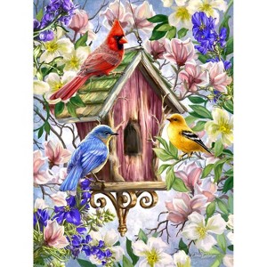 Bring the beauty of nature to life with this elegant 500-piece jigsaw puzzle. Featuring a charming wooden birdhouse surrounded by vibrant flowers and visited by colorful birds - a red cardinal, a bluebird, and a goldfinch - this serene scene is perfect for bird and garden enthusiasts. With its rich details and soft, inviting colors, this puzzle offers a delightful challenge and a peaceful escape. Piece together a masterpiece of springtime splendor! Jigsaw puzzles are a brain-boosting pastime. Assembling the pieces enhances memory, problem-solving, and spatial reasoning. The activity fosters concentration, patience, and a sense of accomplishment. Regular puzzle-solving is linked to improved cognitive function and may reduce the risk of neurodegenerative diseases. Puzzling is not just a game – it's a therapeutic workout for your mind. The process requires concentration and attention to detail, fostering improved focus and patience. In essence, the simple act of piecing together a jigsaw puzzle transcends leisure, becoming a therapeutic activity that nurtures the mind and promotes mental well-being.