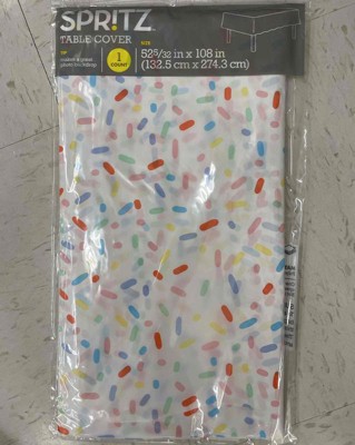 [This review was collected as part of a promotion.] This sprinkle tablecloth from spritz is an adorable addition to a party. The sprinkle print is absolutely perfect for an ice cream table or dessert table. It has a more plastic feel than other disposable table cloths. This makes it easier to wipe off during the party. The long edge has a scallop cut which elevates the table cloth. I’m hoping to use again as a photo backdrop. I received an incentive to write this review.