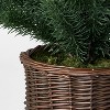This Spruce Christmas Artificial Tree from Threshold™ designed with Studio McGee brings sophisticated holiday elegance to your home. This artificial tree showcases faux spruce branches in a rich green hue that is placed in a brown woven rattan-like pot, sure to infuse fresh holiday vibes into your decor. Whether displayed in your living room, entryway or dining space, this artificial spruce tree provides lasting holiday charm year after year without maintenance.
