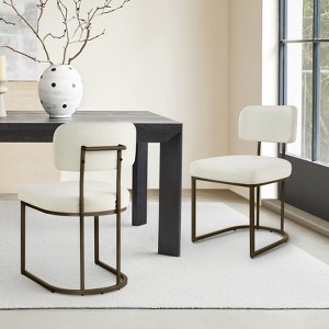Designed with a durable black metal and antique brass frame, this mixed-material dining chair features a low-back silhouette, complete with a convenient back handle for easy mobility¡ªideal for both home and restaurant dining spaces. The upholstered seat and backrest use soft fabric or faux leather for a refined look that elevates any contemporary or industrial-style d¨¦cor. Whether used as a dining room chair, kitchen chair, or commercial-grade seating, this piece is engineered for comfort, durability, and contemporary appeal. Add sleek sophistication to your dining room or kitchen with this contemporary metal dining chair that blends industrial edge with everyday comfort