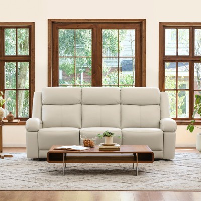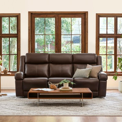 Spruce & Spring Genuine leather Reclining Sofa with Multi-Function Console Brown