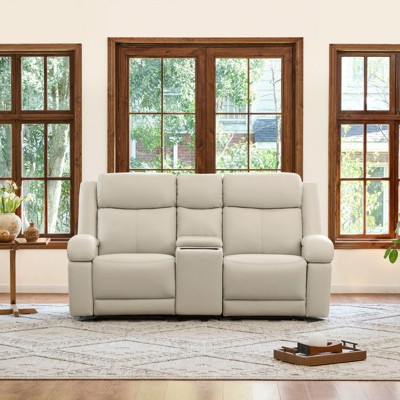 Spruce & Spring Genuine leather Reclining Sofa with Multi-Function Console Saddle