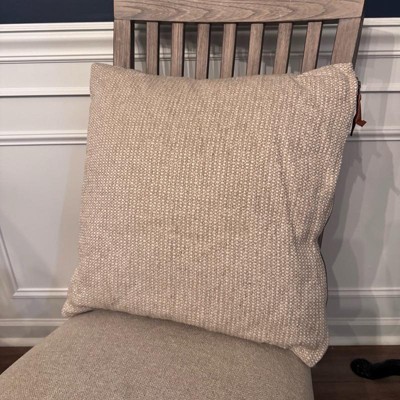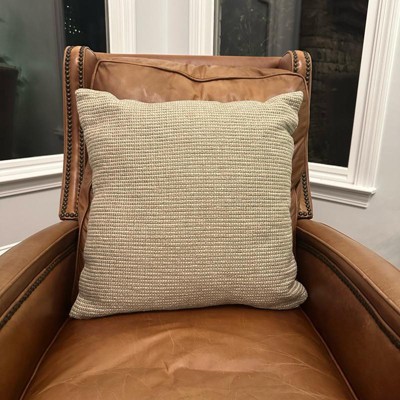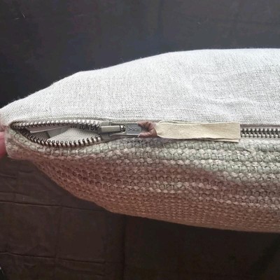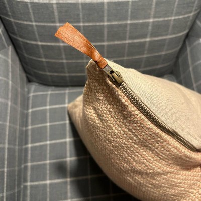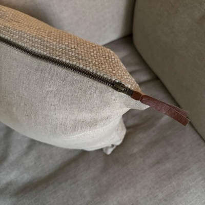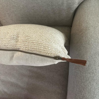 [This review was collected as part of a promotion.] This is such a great pillow. It is large sized and has a beautiful linen woven texture to it. I loved the exposed zipper with the nice leather pull tab on it. Any time I find a pillow with a removable cover I am so happy, it makes cleaning them so much easier. I love that this pillow is double sided and one side is flat an the other is textured