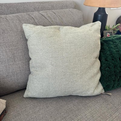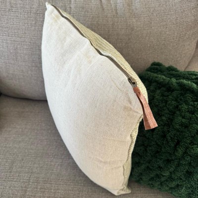 [This review was collected as part of a promotion.] The Threshold Square Chunky Pillow with Exposed zipper in green is the perfect dual sided pillow for an accent chair or your sofa. What a great way to elevate your living room or honestly even your bedroom if you have linen bedding. I love the green textured side. The color is similar to an oat moss green. It’s beautiful and then you flip it over for the linen side. It’s a 2 for 1 pillow.