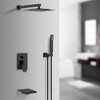 Wall-Mount Square Rainfall Shower Set with Handheld and Waterfall Spout