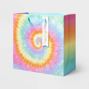 Large Square Tie Dye Birthday Gift Bag - Spritz™: Multicolored Abstract Birthday Bag, Medium Size, 15"x15"x8"