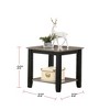 - This contemporary end table brings all the urban sophistication to your home. The smooth surfaces, minimal embellishment, and straight lines characterize contemporary decor. The square end table is perfectly proportioned for pairing with your sofa or couch, and a convenient lower shelf for extra storage or display of your many favorite things.