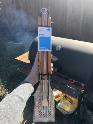 I love this set it works great for my outdoor grill when I invite over freinds and family. It is just the right size and it has all of the essentials for your grilling needs.