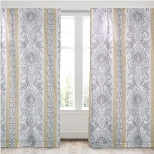 - LEVTEX HOME ST. CLAIRE COLLECTION: The St. Claire curtain panel complements the St. Claire bedding collection but can be used to accessorize any window in your home. This window panels features a collection of medallions and paisleys in grey and yellow expressed as a repeating stripe pattern and will complement so many design choices.