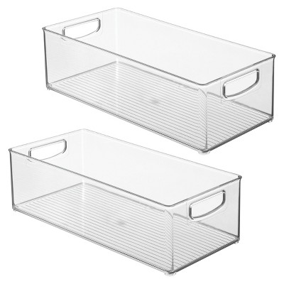 iDesign Stackable Pantry Bin with Handles for Cabinets or Fridge, Set of 2, Clear, Made in USA