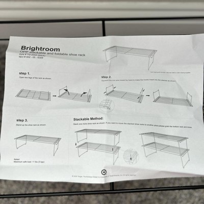 [This review was collected as part of a promotion.] I was looking for a shoe organizer and was interested in Brightroom because it was affordable and is stackable instead of the adjustable width shoe racks. The rack itself was simple to set up, just unfold the legs as soon as you remove from the packaging and it’s ready to use. It’s pretty sturdy and held 3 pairs of shoes on top no problem. I will need to get a few more racks to see how sturdy it is once you start stacking but I like that it’s compact and will fit in a closet shelf or anywhere without taking up much room. The only downside is this can really only be used with shoes without a thin heel because they’ll slip through the rungs. I received an incentive to write this review.