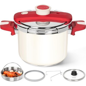 - Stylish Ceramic Exterior - This stainless steel pressure cooker features a sleek cream lacquer finish on the exterior, making it not only easy to clean and maintain but also a decorative highlight in any kitchen.