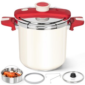- Stylish Ceramic Exterior - This stainless steel pressure cooker features a sleek cream lacquer finish on the exterior, making it not only easy to clean and maintain but also a decorative highlight in any kitchen.