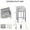 Stainless Steel Thickened Kitchen Utility Sink, Freestanding Single Bowl Kitchen Utility Sink with Pull-Out Faucet for Outdoor Garage Kitchen