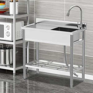 - Premium Stainless Steel: Crafted from 304 stainless steel, this freestanding sink resists rust and daily wear, giving you a reliable solution for tough messes in the garage, laundry room, kitchen, or outdoors—just wipe clean for long-lasting shine every day