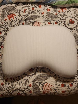 So far this has been a great pillow. The cutout for your neck allows my head and shoulders to align and lay better in my 2 pillow setup. This leads to much better sleep quality and what I guess is less snoring since I am not woken up in the middle of the night and told to shift around. The pillow is made with a soft, medium-density memory foam that conforms to my head and neck perfectly. The only con I have for the pillow is that even though covered with a soft, breathable fabric it sometimes feels hot on my head before I fall asleep. But that could just be that I have an abnormally hot sleeping head. It's not enough to make me sweat or keep me awake its just a different feeling from my previous pillow.