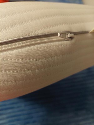 I love everything about this pillow except for sleeping on it! The shape is great for a side sleeper, the cover is extremely well made, it is comfortably soft and firm at the same time BUT when my head is resting on it while lying on my side, it raises my head up too high which causes my neck to hurt. I may try sitting on it for a few days to see if I can break the foam in, because I really like, and had high hopes for, this pillow!
