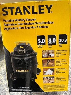 - Stanley stainless steel 8 Gal. wet/dry vacuum features a powerful motor for industry leading performance, providing maximum suction for heavy-duty pickup