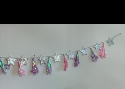 Precious banner- love the pink and purple colors with iridescent hue. Can mix and match with other spritz items. Can be reusable if stored properly. Only con I can note is sparkles from the starts do shed.