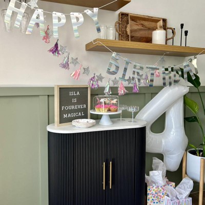 Super cute & the price can’t be beat. Used this for our daughter’s birthday party & then hung it in her room after.