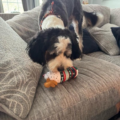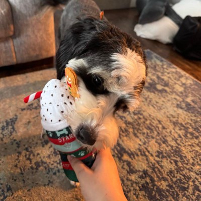 [This review was collected as part of a promotion.] Penny went wild for the ginger-latte-inspired plush from Starbarks! The decorative design is adorable, and the soft yet durable plush material held up nicely through tug and cuddle time. The built-in squeaker and crackle kept her playing longer than usual, and the machine-washable feature is a big plus for messy pups. One note: if your dog is a heavy chewer, it may not hold up forever, but for daily fun and festive flair, it’s a win!
