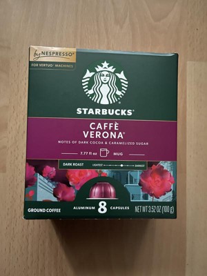 - STARBUCKS BY NESPRESSO PODS: Enjoy the Starbucks coffee you know and love with this 8-count box of Starbucks Caffè Verona capsules for Nespresso Vertuo Machines