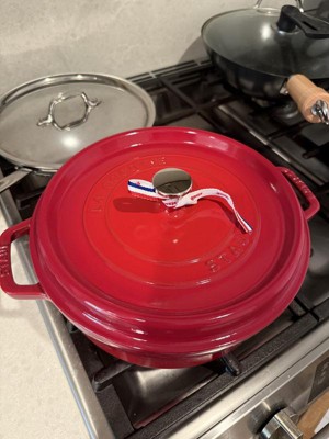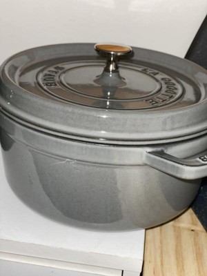 The Staub cocotte is unsurpassed for slow-cooking meats and vegetables to tender perfection, and for simmering hearty stews and soups. Cast iron possesses exceptional heat-retaining qualities, so the pot heats evenly throughout. The innovative lid features tiny spikes on the interior that continually release condensed liquid back onto the food, yielding moist, flavorful results.Staub's special matte black enamel interior and self-basting spiked lid guarantee perfect browning and braising for flavor-enhanced food. With their exquisite enamel finish, each piece transitions beautifully from the kitchen to the table. From comfort food to sumptuous suppers, every dish is special when served in Staub.Staub enameled cast iron cookware is the choice of the world's best chefs. With exceptional durability, it is perfect for day-to-day use in both gourmet home kitchens and prestigious restaurants around the world. Built to last a lifetime, these heirloom pieces can be passed from generation to generation.