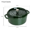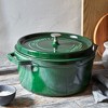 The Staub cocotte is unsurpassed for slow-cooking meats and vegetables to tender perfection, and for simmering hearty stews and soups. Cast iron possesses exceptional heat-retaining qualities, so the pot heats evenly throughout. The innovative lid features tiny spikes on the interior that continually release condensed liquid back onto the food, yielding moist, flavorful results.Staub's special matte black enamel interior and self-basting spiked lid guarantee perfect browning and braising for flavor-enhanced food. With their exquisite enamel finish, each piece transitions beautifully from the kitchen to the table. From comfort food to sumptuous suppers, every dish is special when served in Staub.Staub enameled cast iron cookware is the choice of the world's best chefs. With exceptional durability, it is perfect for day-to-day use in both gourmet home kitchens and prestigious restaurants around the world. Built to last a lifetime, these heirloom pieces can be passed from generation to generation.