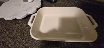 This is a beautiful baking dish and will definitely be a staple on my dinner and holiday tables. It's the perfect size for side dish and the Ivory-white is a classic color that will go with anything. The ceramic is also easy to maintain and heats evenly. Excited to add this one to my collection!